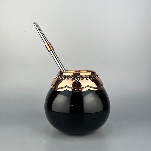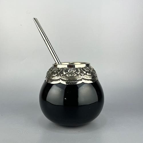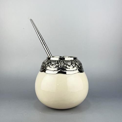 26,000円(税込28,600円)マテ壺の最高峰と呼ばれるインペリアルです。インナーはセラミックで本革巻き、口部飾りはアルパカ(洋白)に刻印が施されたマテ壺です。サイドにもぐるりとアルパカがふんだんに使用されています。