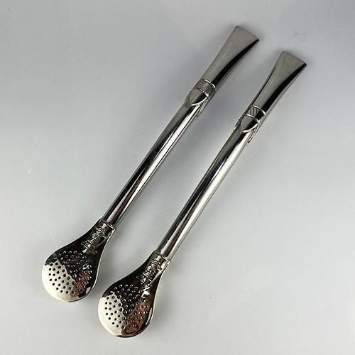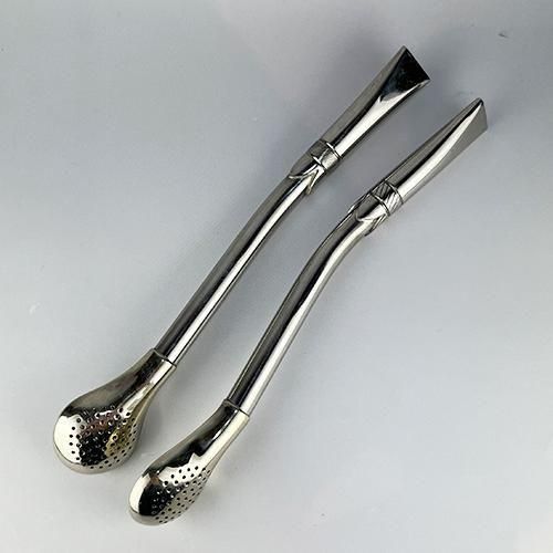 ヘアラインマテ茶を飲むための伝統的な茶漉し付きの金属ストロー(ボンビージャ)です。