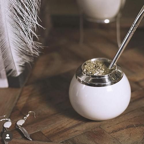 ひょうたん型のシルエット等、伝統的な要素を取り入れつつも、モダンにアップデートされた大変上品で洗練されたマテ壺です。口部飾りは、銅製で打ち込みの刻印入り、セットのボンビージャは、アルパカ(洋白)製です。実用性と美を兼ね備えるストレートタイプのオリジナルボンビージャは、美的要素を大切にするブランドのこだわりから、全てセットになっています。