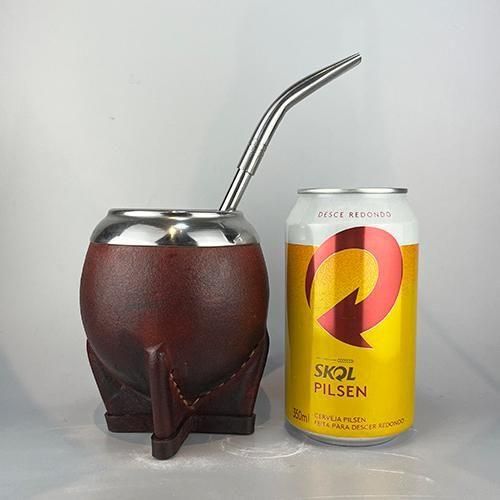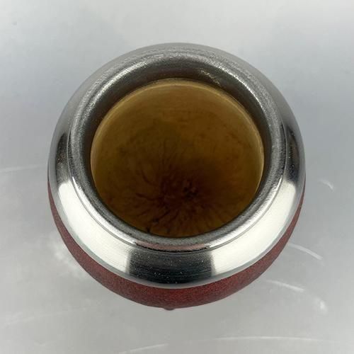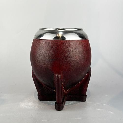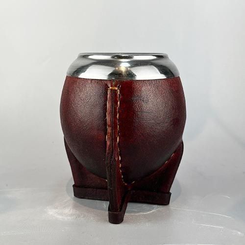 カラバサ(ひょうたん)に、口部金属は、ステンレスで本革巻きです。ウルグアイを代表する人気の丸型の定番モデルで、程よいサイズ感、シルエット、レザーの質感や縫製等、非常に良い作りで総合点の高いマテ壺です。