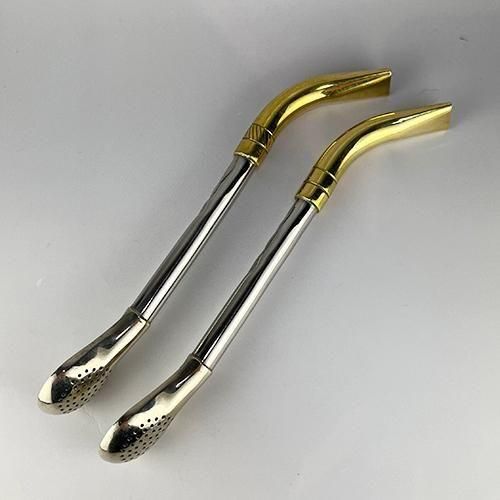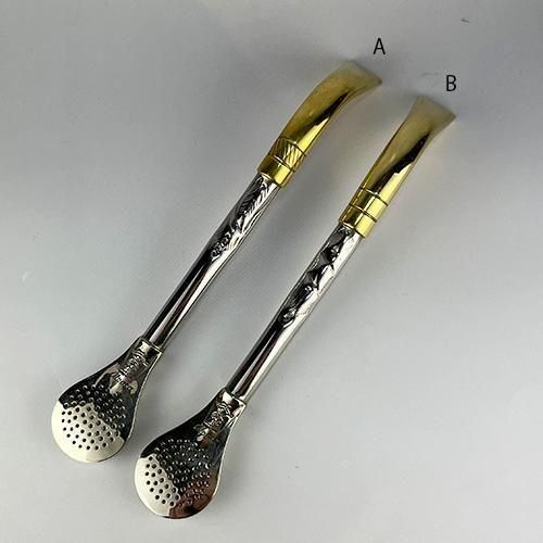 マテ茶を飲むための伝統的な茶漉し付きの金属ストロー(ボンビージャ)です。